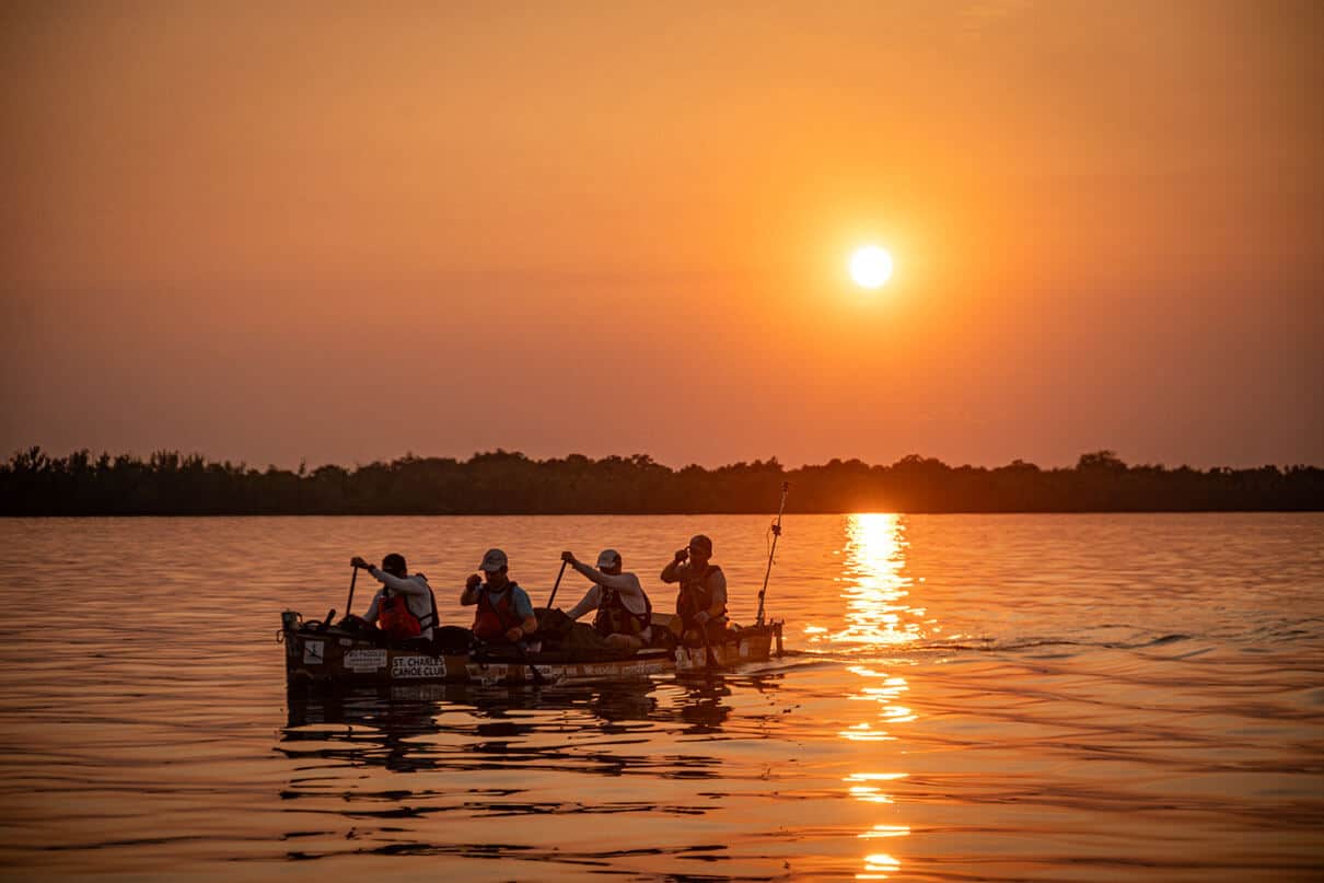 Full tilt: Scott Miller, creator of the Fastest Known Paddle website, is seen in the stern during 2023’s record-setting Mississippi speed run. Watch a documentary about the journey at wildernessmindset.com. | Feature photo: Courtesy Wilderness Mindset